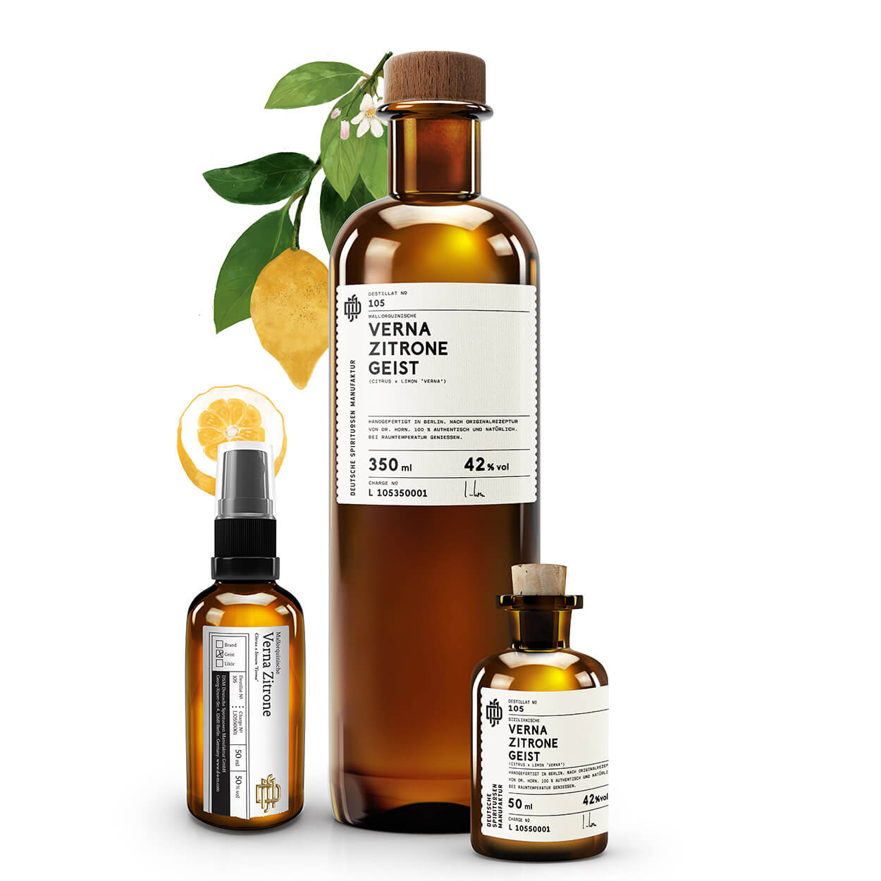 Als Freunde uns zu ihrer Hochzeit in der Nähe von Sóller auf Mallorca einluden, lernten wir erstmals die Serra de Tramuntana kennen und waren begeistert. Besonders in Erinnerung blieben uns die unfassbar aromatischen Zitronen, die eine so hervorragende Marmelade ergaben. Und so war klar, dass wir diese Früchte haben mussten, um daraus einen ebenso aromatischen Geist herzustellen. Unser Lieferant bezieht die weit verbreitete Verna Zitrone von kleinen Produzenten, die ökologisch herstellen und auf jegliche Behandlung während der Reifung und nach der Ernte verzichten. Wesentlicher Geschmacksträger unseres Geistes ist das Schlüsselaroma der Zitrone, das Citral (ein Isomerengemisch der Aldehyde Geranial und…