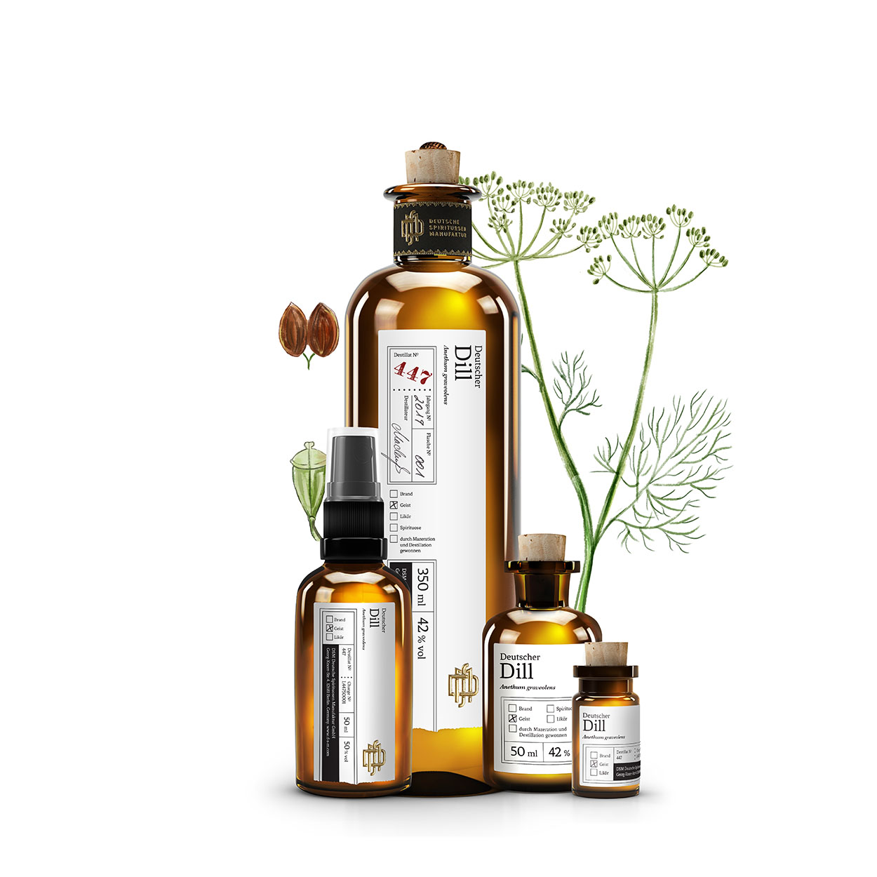 Wenn man vom Küchenchef einer so erlesenen Berliner Adresse gefragt wird, ob man denn auch plane, einen Geist vom Dill herzustellen, dann ist das schon mal eine ausgezeichnete Motivation in die Produktentwicklung einzusteigen. Die erste Frage ist die des einzusetzenden Rohstoffs, denn man kann sowohl das Dillkraut, als auch dessen Samen verwenden. Hier kamen uns die Nase und die Wissenschaft zu Hilfe: das frische Kraut hat einfach die feineren Noten, was durch die Untersuchung verschiedener Reifezustände des Dills erklärt werden kann. Denn nach der Phase der Blüte, wenn die Samen zu reifen beginnen, steigt der Anteil des auch für das…