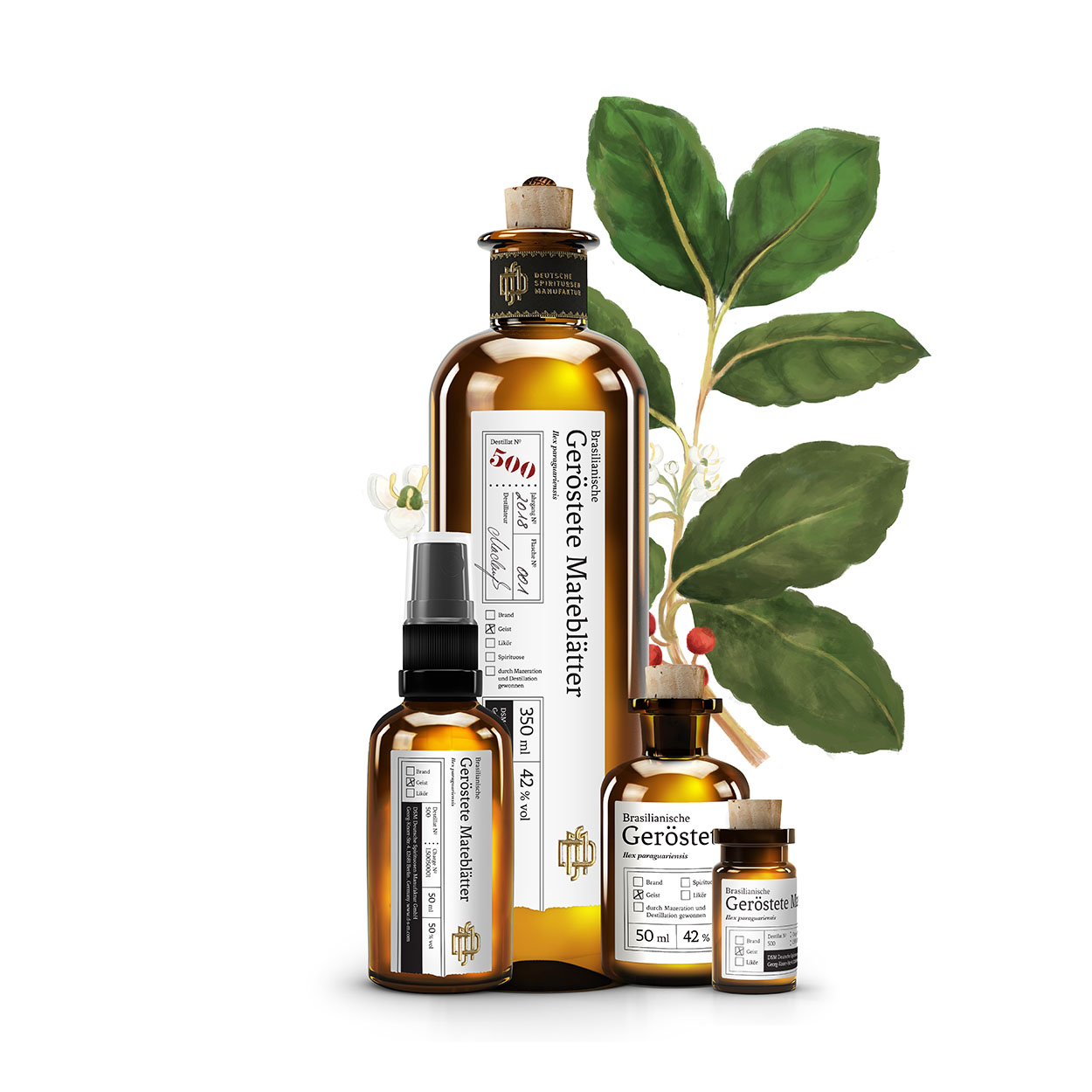 Den meisten dürfte Mate in Form eines Tees bekannt sein. Oder auch in Form eines aus der Hackerszene hervorgegangenen Kultgetränks. Die grünen ungerösteten Mateblätter werden zudem auch als traditionelles pflanzliches Arzneimittel gegen geistige und körperliche Ermüdung eingesetzt. Wesentlicher Unterschied unseres Geistes zu beiden Getränken und zur arzneilichen Anwendung: unser Geist enthält keine aufputschenden Purine, da Coffein, Theophyllin und Theobromin unter den Destillationsbedingungen nicht flüchtig sind. Flüchtig sind dafür all die Aromen, die für den reifen, süß-säuerlichen, erdig-rauchigen in Richtung von welken Blättern gehenden Geruch und Geschmack verantwortlich sind, und diese machen unseren Geist aus gerösteten Bio-Mateblättern wahrlich aufregend! Wichtig für…