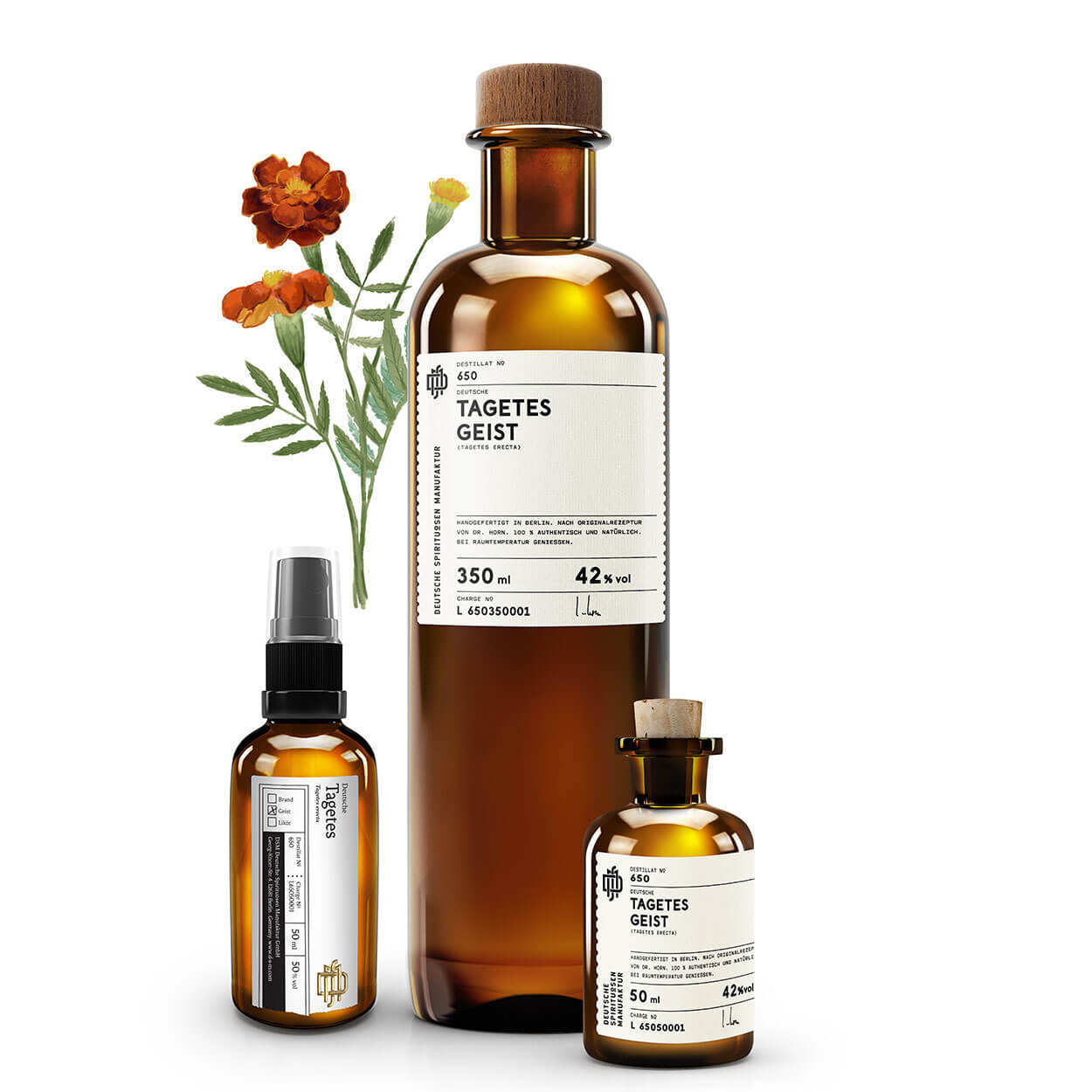 Die Studentenblume, wie die Tagetes auch genannt wird, stammt ursprünglich aus Süd- und Mittelamerika und wird schon seit dem 16. Jh. kultiviert. Im Orient als Gewürz- und Heilpflanze genutzt, wird sie bei uns hauptsächlich als Zierpflanze betrachtet, ihre essbaren Blüten krönen aber auch hierzulande so manches Gourmet-Gericht. Ein bisschen schade ist es daher schon, dass die herrlich gelb-orange Farbe ihrer wunderschönen Blüten in der Schlempe, dem Rückstand aus Feststoffen und nicht flüchtigen Bestandteilen des Mazerats zurückbleibt. Denn das Auge isst (und trinkt) bekanntlich mit. Unser Geist von der Tagetes – einer von über 50 bekannten Sorten – ist ein klares,…